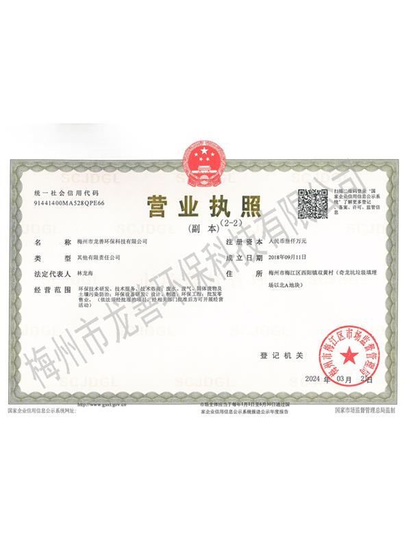 梅州市龍善環??萍加邢薰緸辇埳骗h保股份有限公司(簡稱“龍善環?!保┳庸尽}埳骗h保于1995年12月成立,注冊資本為人民幣6,000萬元,總部位于深圳市南山區月亮灣大道2078號兆龍大樓16層。公司經生態環境部、廣東省生態環境廳、深圳市生態環境局、深圳市交通運輸委員會、深圳海事局等部門許可專業從事陸地和海洋環境保護產業的高科技民營企業,主要經營業務包括工業廢物收運、資源化利用和無害化處理處置、海洋船舶污油水接收和集中處理處置、突發環境事故清污應急處置等......